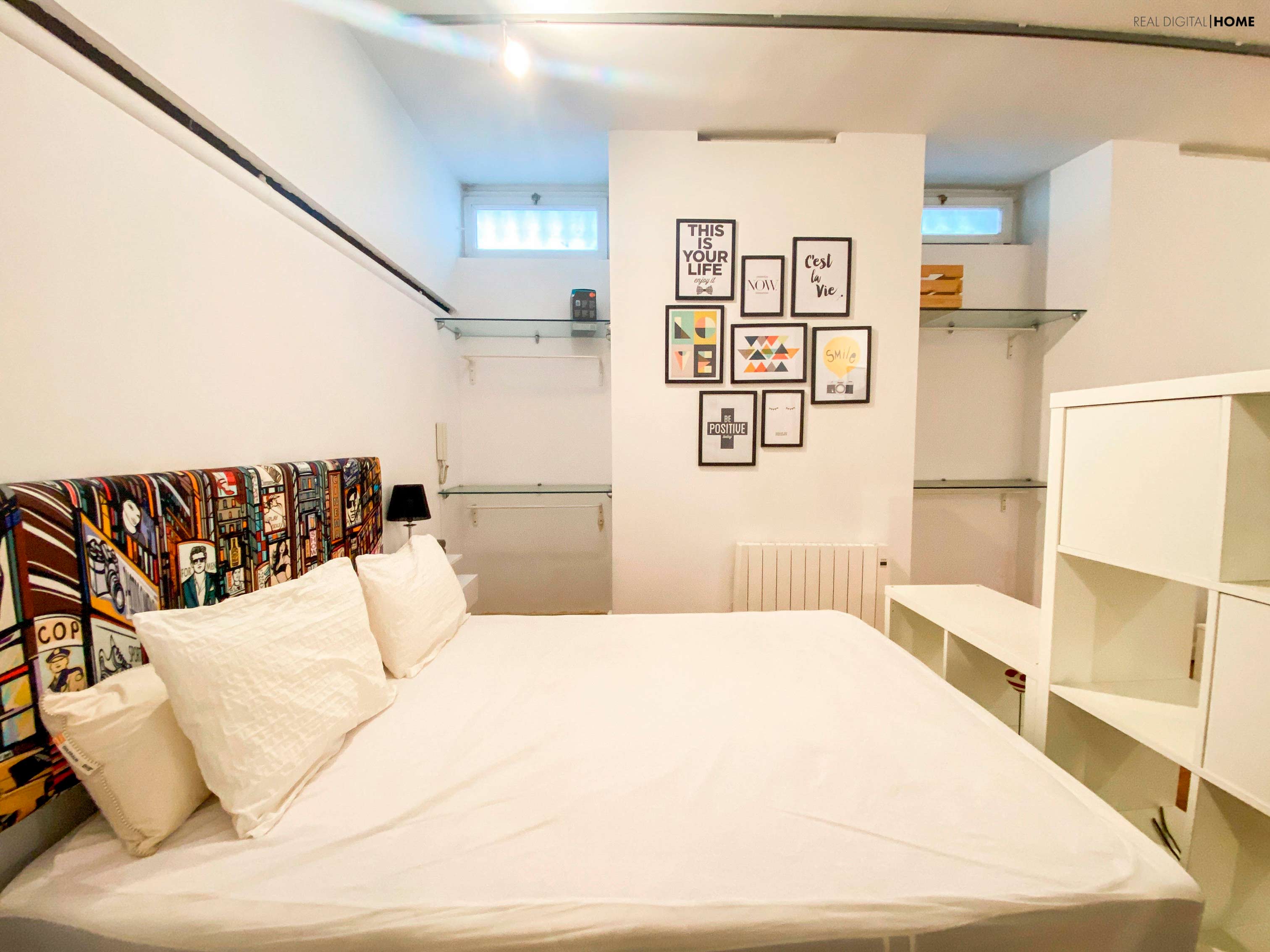 El loft, exterior con orientación norte, dispone de un baño completo, y una zona abierta con salón-comedor, dormitorio y cocina totalmente equipada.