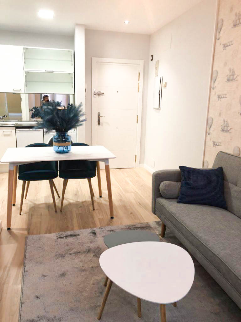 En la primera planta, totalmente reformado con materiales de máxima calidad, con un diseño moderno y elegante, con tonos claros que da amplitud a toda la estancia y mobiliario de alta calidad y funcional. Cuenta con un salón muy luminoso, exterior, con cómodos sofás donde descansar de la rutina del día. Dispone de una moderna cocina estilo ‘Open Plan’, totalmente equipada con electrodomésticos de primera calidad. La zona de noche está compuesta por 1 habitación confortable y con luz natural y un baño moderno y funcional.