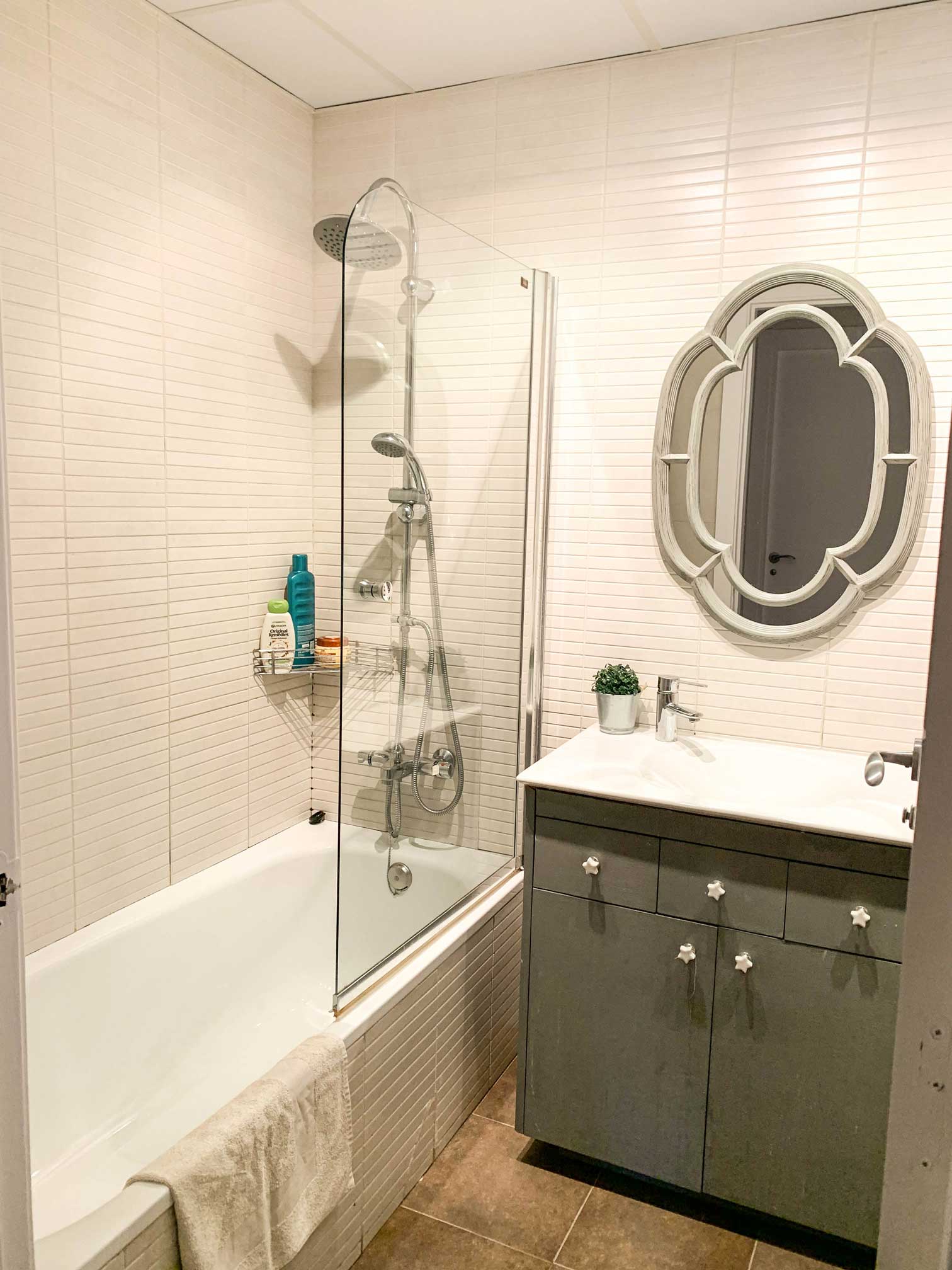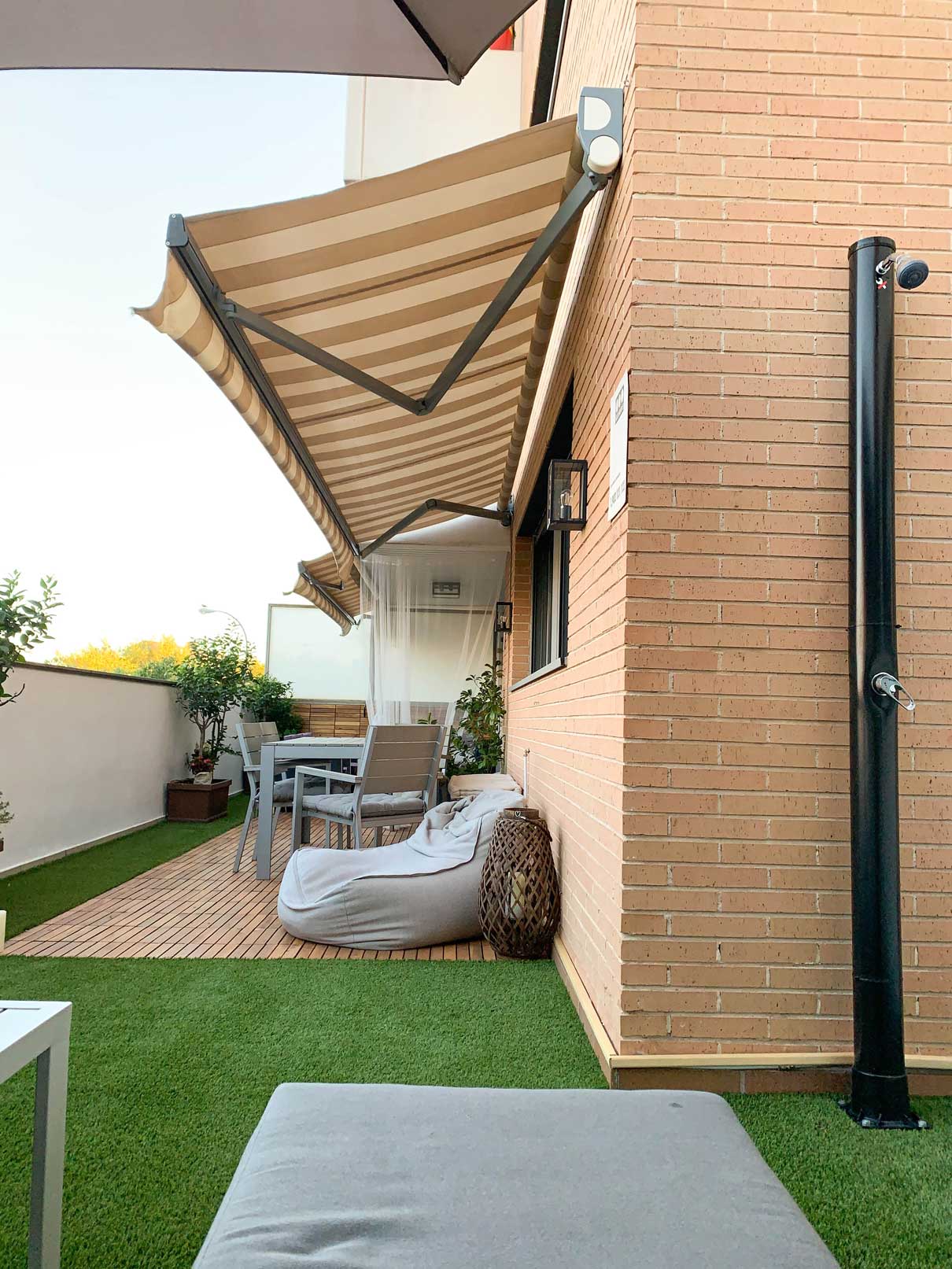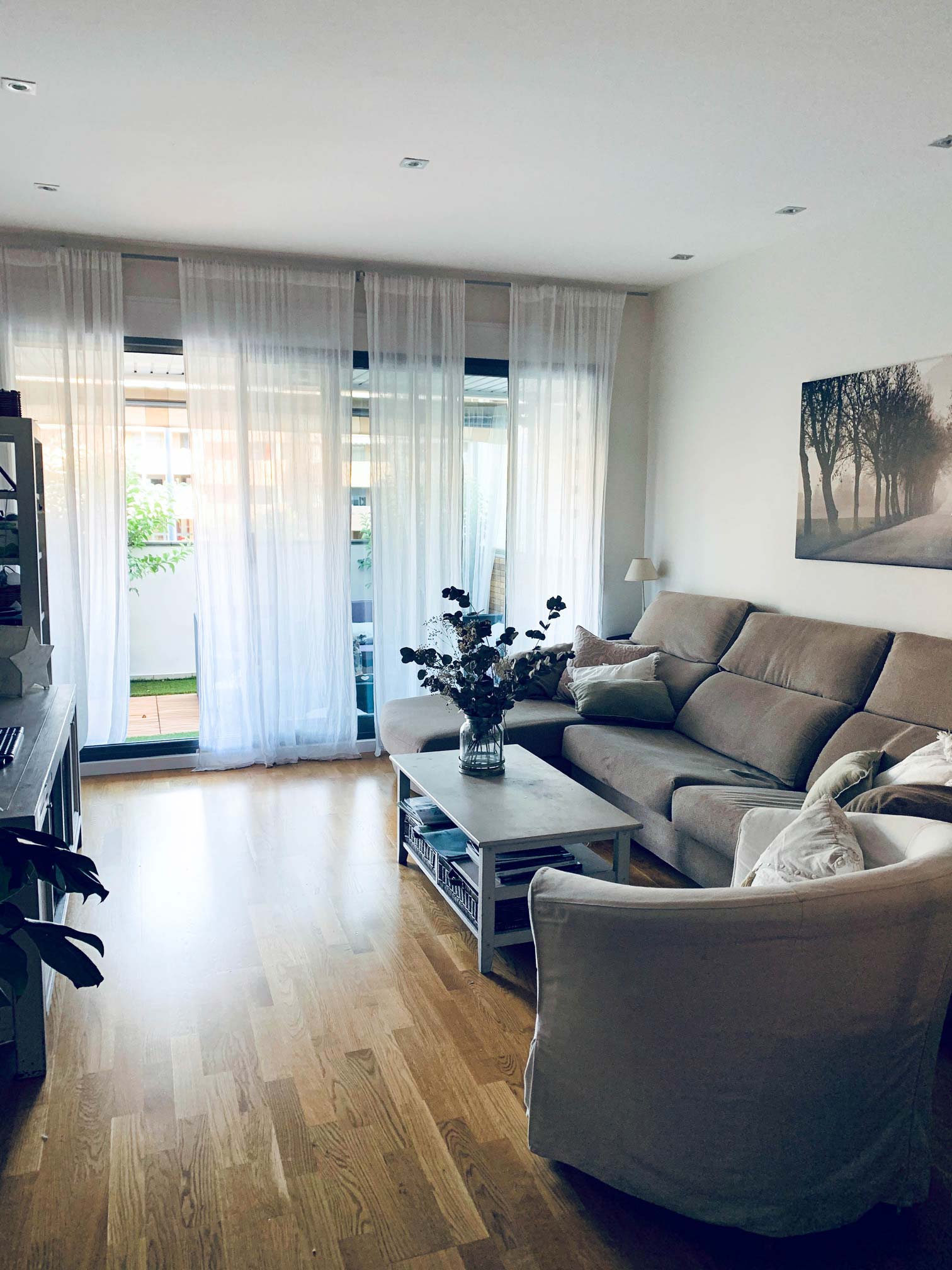 El piso está en perfecto estado y muy cuidado, listo para entrar a vivir. Tiene 3 habitaciones, todas exteriores, (la principal en suite) y las otras dos habitaciones comparten el otro baño. El amplio salón de 30m2 da acceso a la preciosa terraza de 40m2, recientemente decorada con césped artificial de primera calidad, suelo de madera y ducha exterior, dispone de toldos (el grande es eléctrico). Cocina espaciosa que da acceso a un patio interior de 8 m2. Todas las habitaciones tienen armarios empotrados vestidos. La carpintería interior está lacada en blanco con rodapiés de 11 cm, recién puestos. El suelo es de tarima.