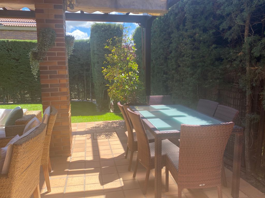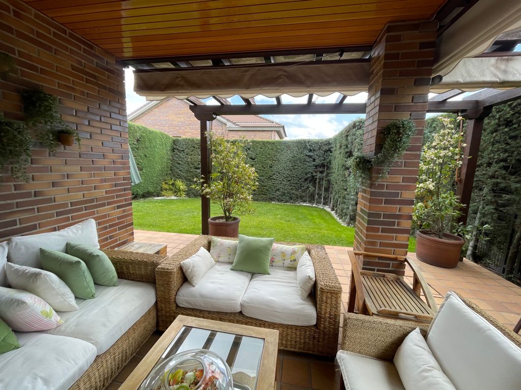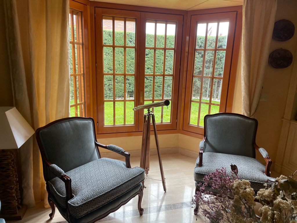 El gran salón, de 70 m2, tiene una preciosa chimenea que hace de los días de invierno un hogar cálido y acogedor. Además, da acceso a un fabuloso porche, cubierto, amueblado y decorado con zona de comedor, con gusto exquisito. También dispone de un amplio jardín privado, donde poder tomar el sol y disfrutar de la naturaleza. Además de una barbacoa de obra para disfrutar de comidas y cenas al aire libre.