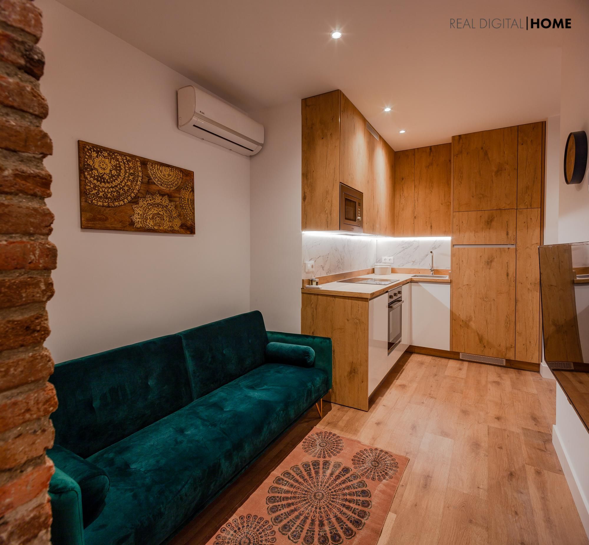 Cuenta con una cocina open-plan, totalmente equipada, y un coqueto salón muy actual.