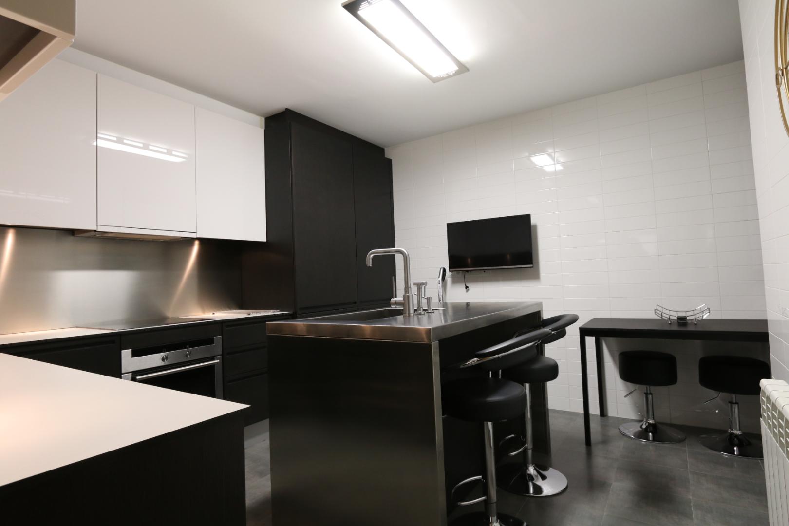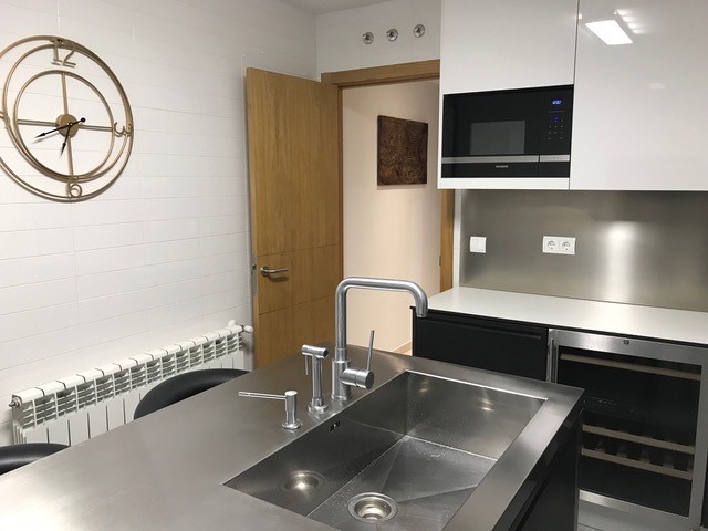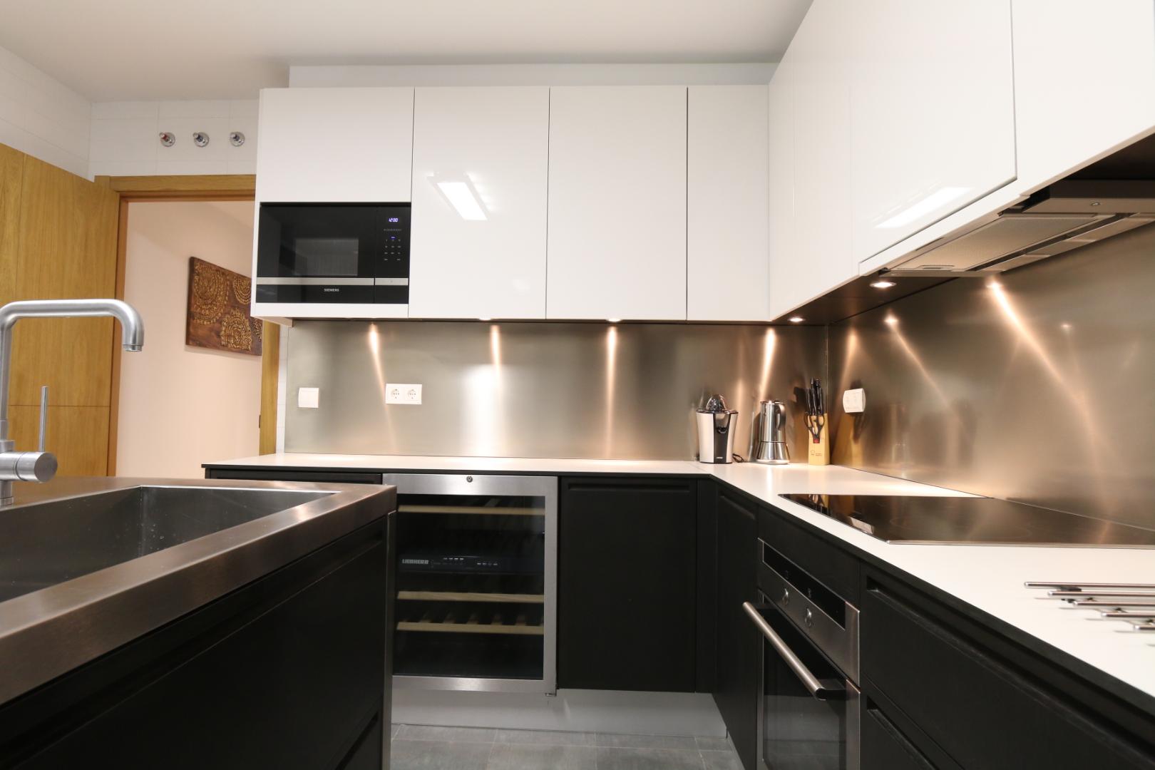 La cocina, totalmente equipada con electrodomésticos Siemens y enfriador de vinos. Distinguida isla revestida en acero , que a la vez hace de barra para desayunar o tomar un aperitivo.