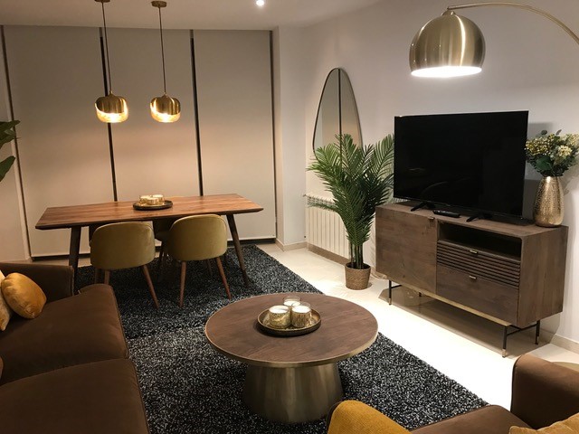 En 155 mts2 disponemos de este hermoso piso amueblado con un exquisito gusto y a estrenar, con zona de recibidor, cocina y baño completo en la planta de abajo. Dos dormitorios y dos baños en la planta superior.