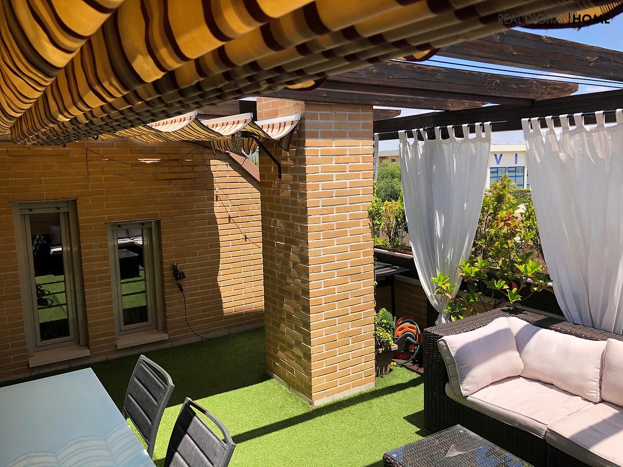 La planta superior dispone de 2 preciosos dormitorios, el principal con un baño en suite y un espacioso vestidor. También cuenta con una gran terraza de 20 m2 recientemente decorada con césped artificial de primera calidad.
