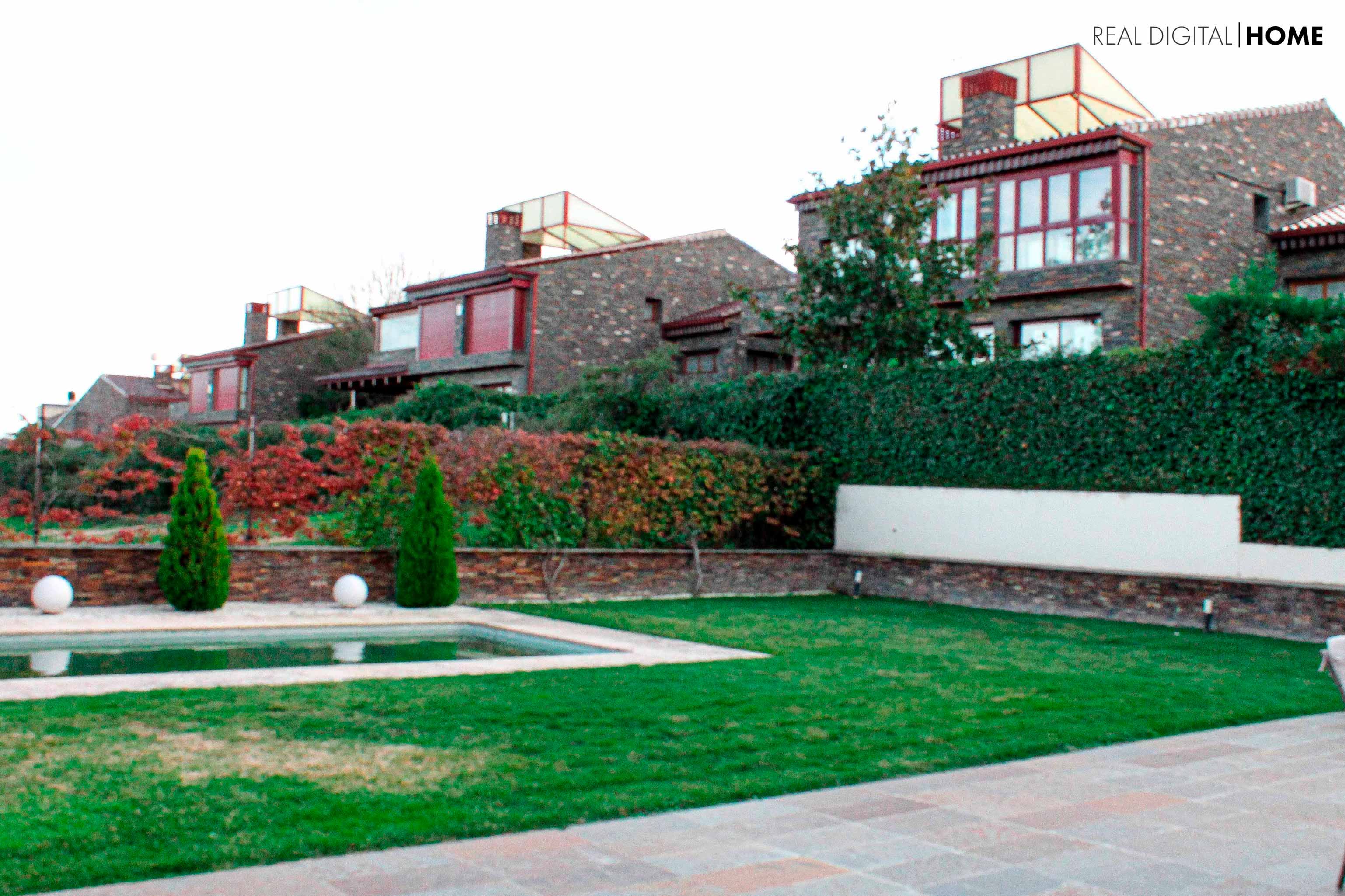 La parcela está rodeada por un patio privado, totalmente equipado y ajardinado. Una piscina exterior grande, zona de solarium y de comedor exterior. Además, cuenta con un parking exterior para vehículos y sistema de seguridad por cámaras. Con carpintería exterior de pizarra.