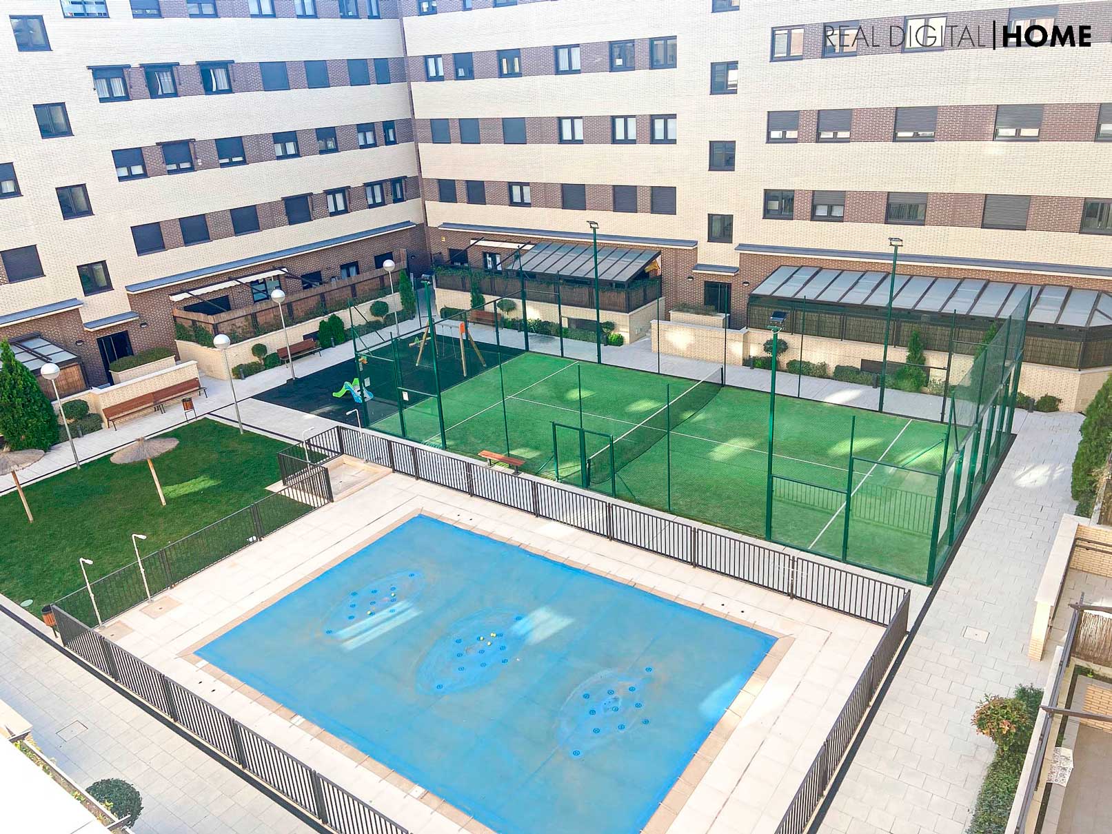 La urbanización consta de seguridad 24 horas, piscina, gimnasio equipado, pista de pádel, sala de eventos, cuartos de bicicletas y cctv 24h. Zonas ajardinadas y área infantil.
